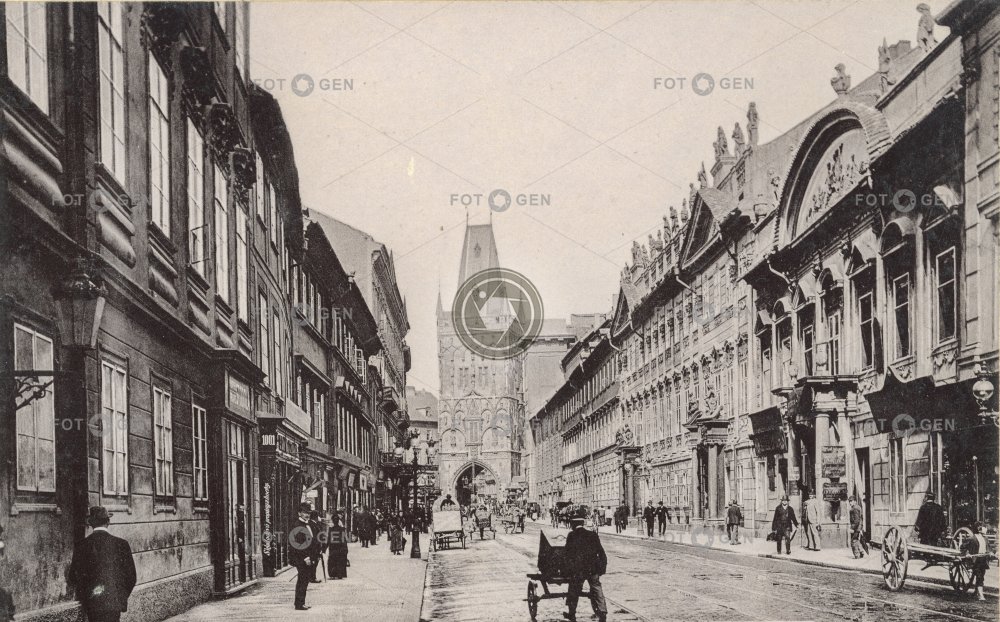 Hybernská ulice a Prašná brána, 1896, kabinetka, světlotisk