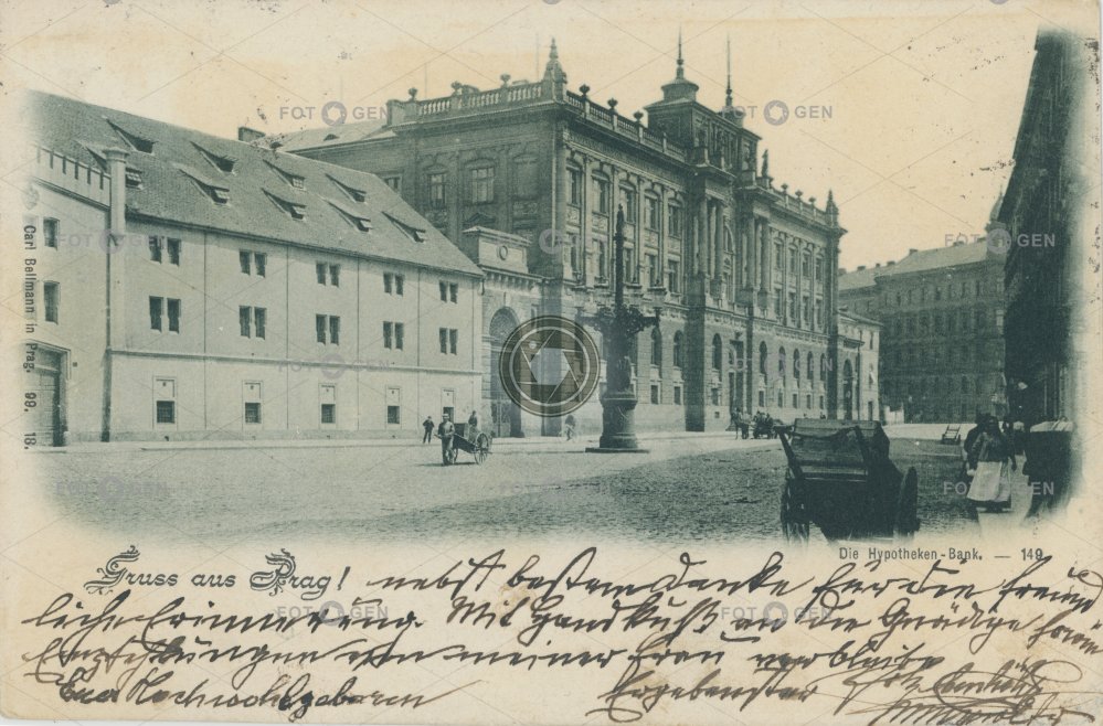 bank banka dvoukolák handcart Havlíčkovo Havlíčkovo náměstí hypoteční Hypotéční banka kandelábr Karel Bellmann lamppost místopis Mortgage bank náměstí Old Town Prague Praha ruční vozík Senovážné square Staré Město topography