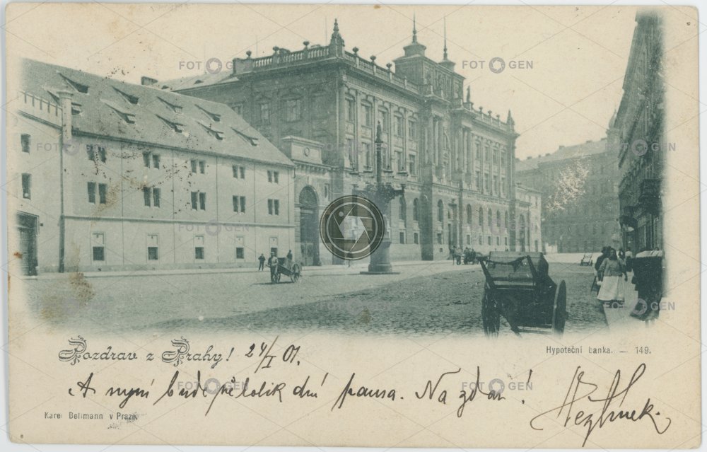 1901 bank banka barrow candelabra dvoukolák Havlíčkovo hypoteční kandelábr Karel Bellmann místopis náměstí New Town Nové Město novorenesance pouliční osvětlení Prague Praha Senovážné topography vlečka