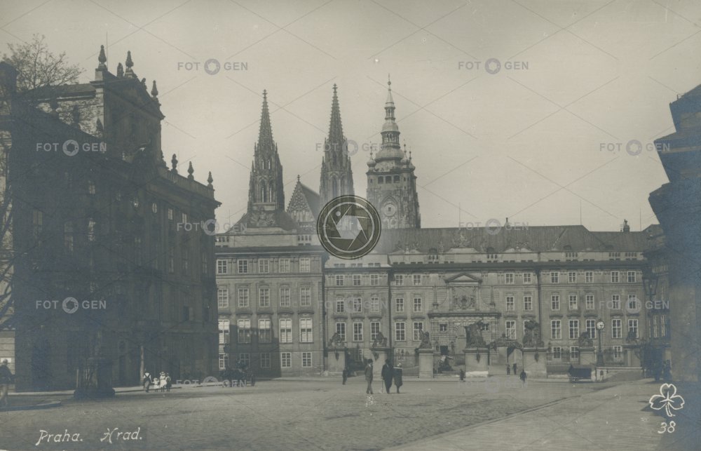brána gate Hradčanské náměstí Hradčany church katedrála svatého Víta Kirche kostel místopis Prague Prague Castle Praha Pražský hrad St. Vitus Cathedral topography
