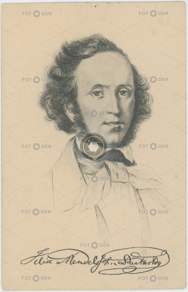 celebrity composer drawing Felix Mendelssohn Bartholdy Germany hudební skladatel Jakob Ludwig kresba malba Německo osobnosti painting podpis portrait portrét signature