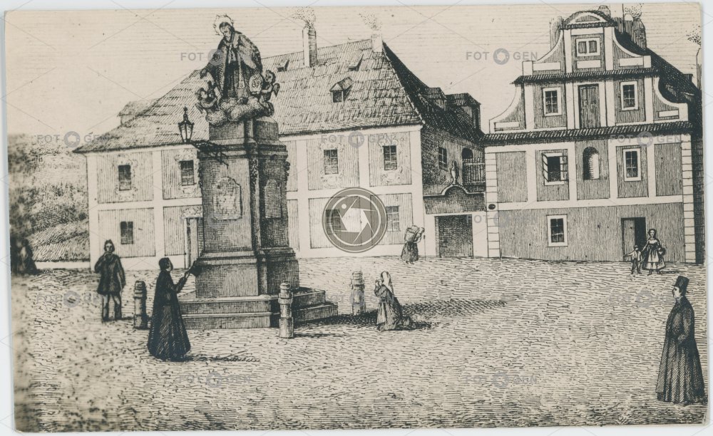 1870 art drawing Janské náměstí kresba malba místopis Na Františku náměstí náměstí Curieových painting Prague Praha sakrální památka sculpture socha socha sv. Jana Nepomuckého square sv. Jan Nepomucký topography umění