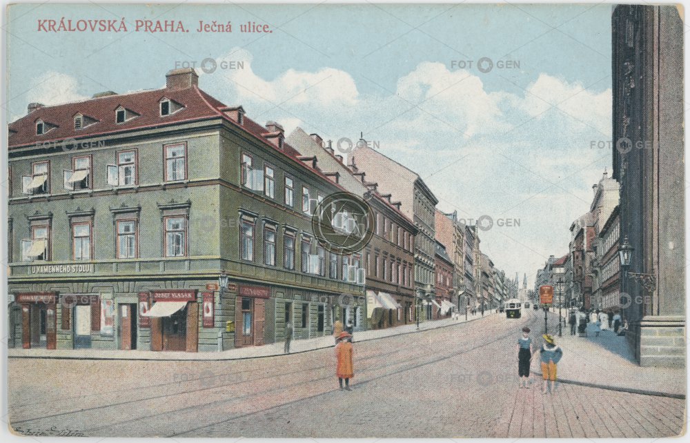 1908 barevná colored Ječná kolorovaná místopis New Town Nové Město Prague Praha topography U kamenného stolu