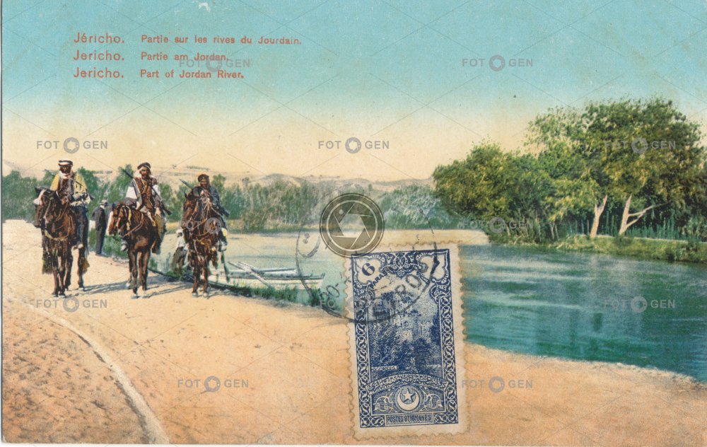 alive arab arabové Arabs As-Sulta Al-Wataníja Al-Filast barevná color colored ethnology etnologie horse horseman Jericho jezdec Jordan kolorovaná kůň místopis orient orientální Palestina Palestinian Palestinian National Authority Palestinská autonomie příroda river řeka stromy topography Yareah živá