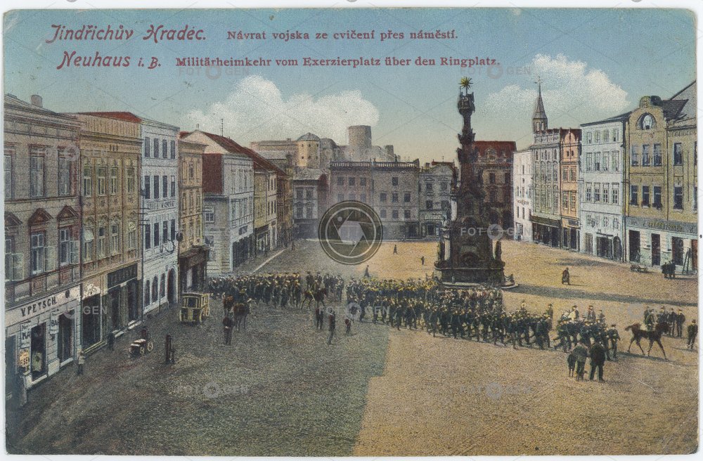 animal / bird army doprava Jindřichův Hradec manévry náměstí Neuhaus square transport vojáci vojenské cvičení vojsko zvířata