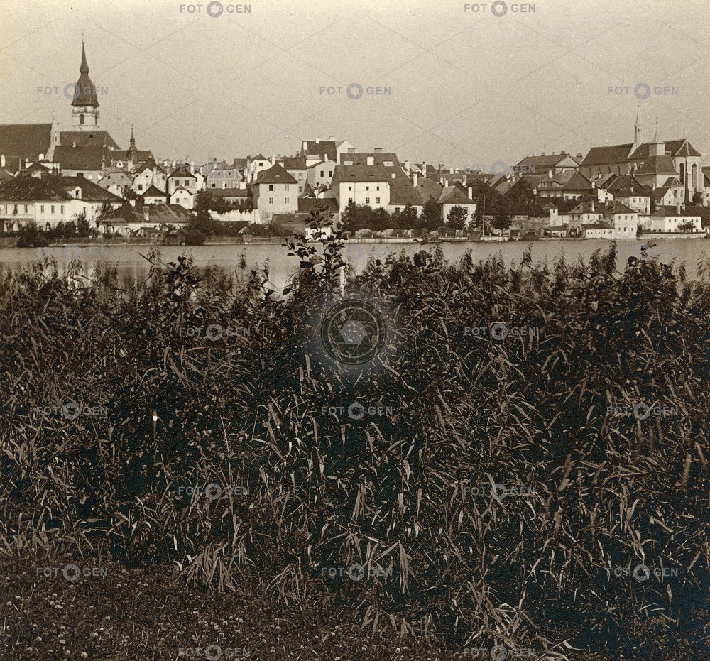 church Jindřichův Hradec kostel místopis nature panorama pond příroda rákosí reeds rybník silhouette of the city silueta města topography Vajgar