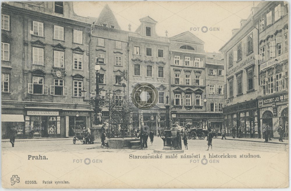 1910 alive dům dvoukolák fountain Gothic gotika handcart kandelábr kašna Královská cesta lamppost lékárna lighting Malé náměstí Malý místopis Old Town osvětlení Pharmacy pouliční lampa Prague Praha pump pumpa Richtrův dům ruční vozík ryneček rynek Staré Město street lamp studna tepaná mříž The Royal Way topography U Zlaté lilie vodovod water supply well wrought-iron grille živá