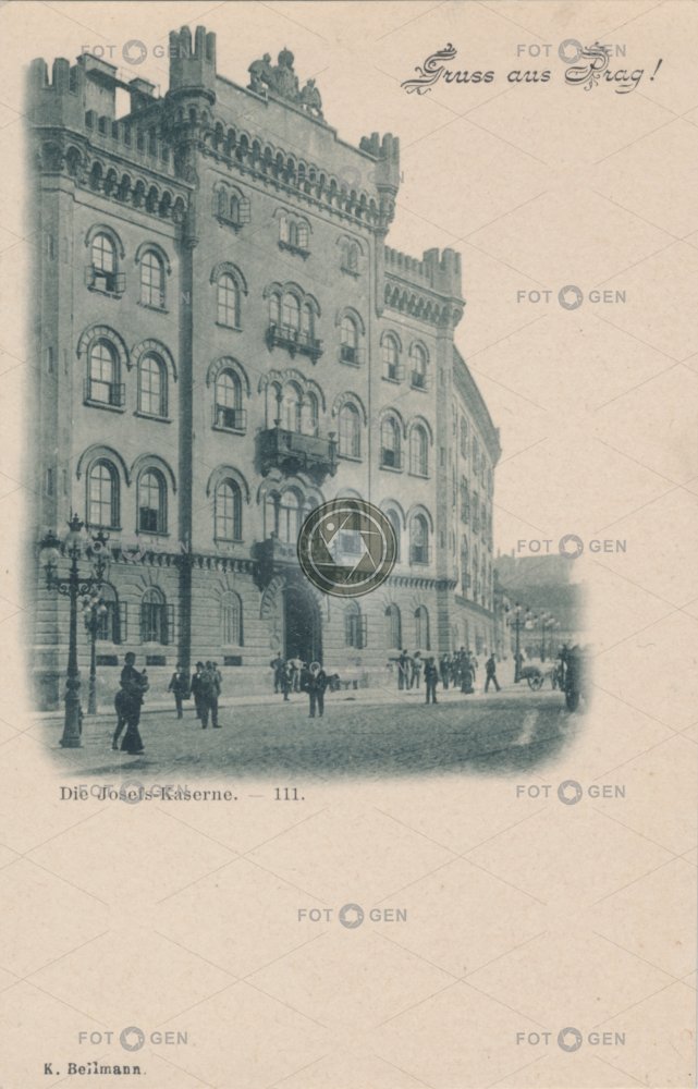 army barracks Josefská kasárna Josefské kasárny místopis Neo-Gothic New Town Nové Město novogotika obchodní dům Palladium pouliční lampa pouliční osvětlení Prague Praha Republiky street lamp topography vojsko