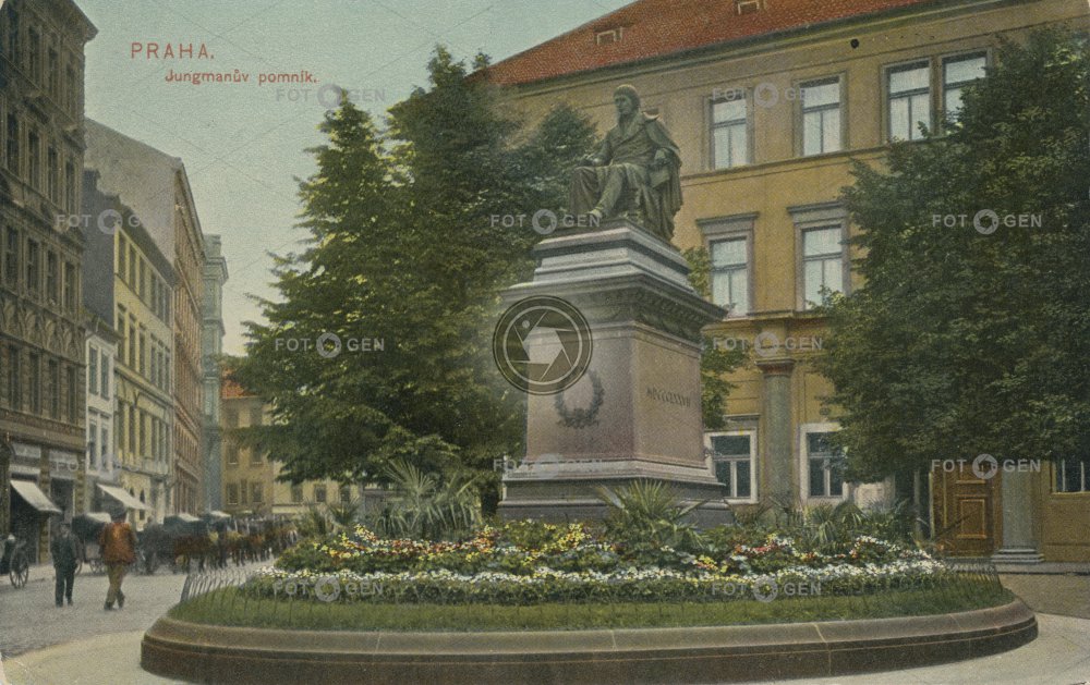 1907 barevná cab colored Josef Jungmann Jungmannovo Jungmannovo náměstí kolorovaná memorial místopis New Town Nové Město pomník Prague Praha sculpture socha topography