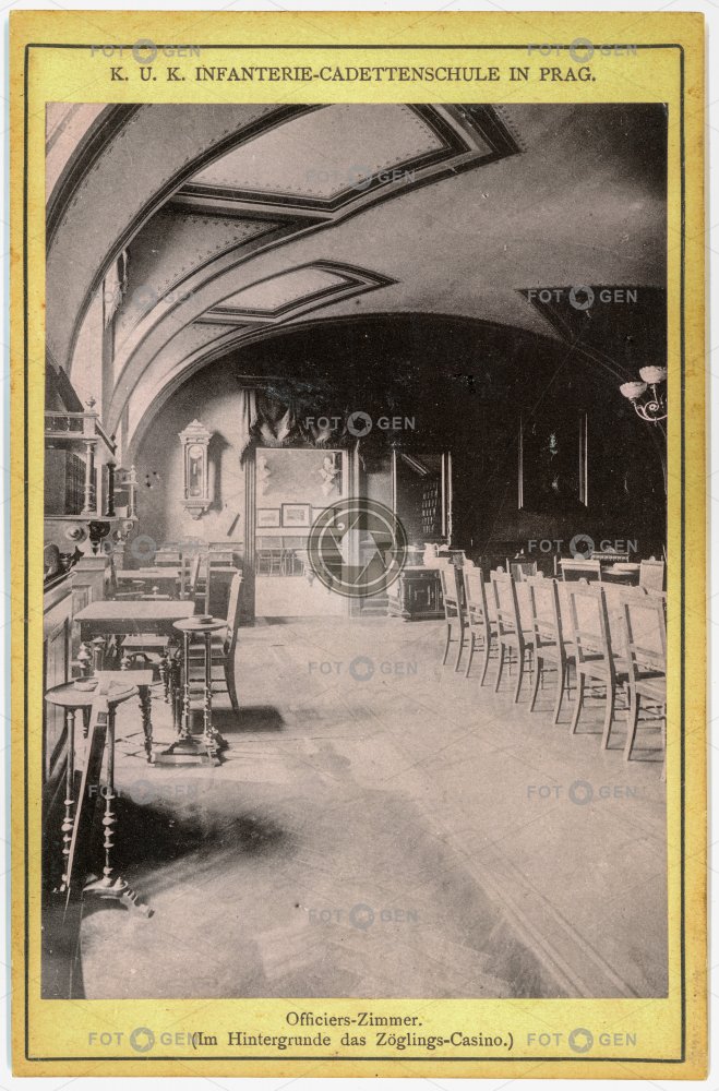 cadet důstojníci důstojnický klub Infantry Cadet SchoolI kadet kasárna military barracks místopis officer club officers Prague Praha school stůl škola table topography Troops vojsko výcvik