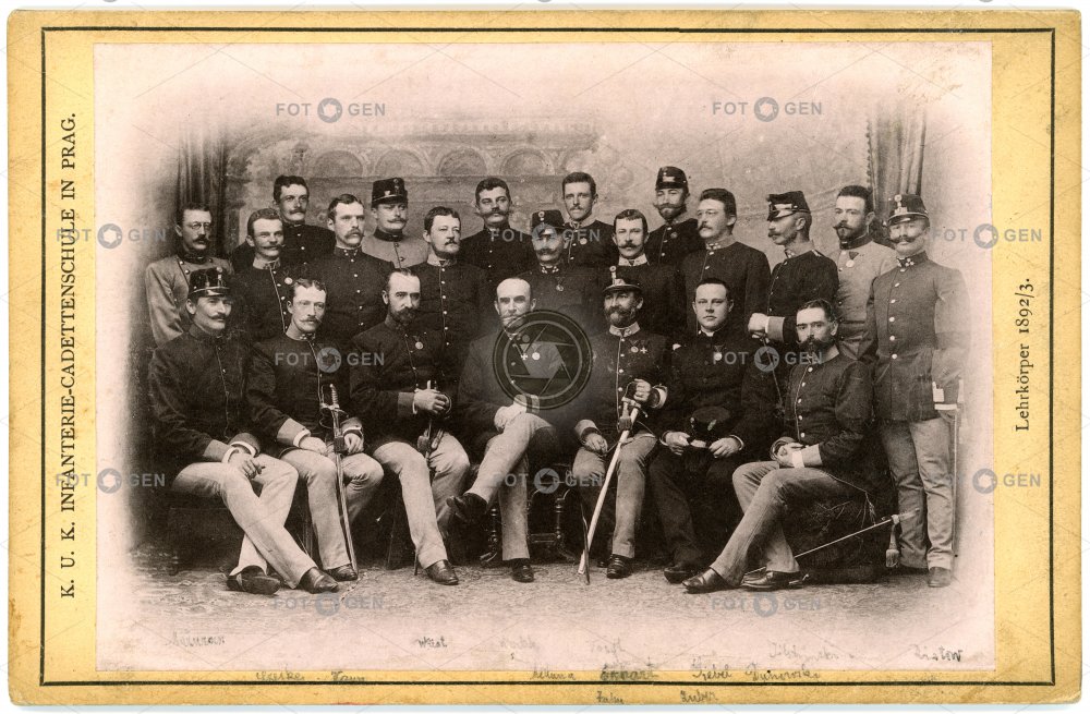 cadet důstojník group Infantry Cadet SchoolI kadet kasárna knír kolektiv military barracks místopis mustache officer Prague Praha school škola teacher topography training Troops učitel uniform uniforma vojsko výcvik