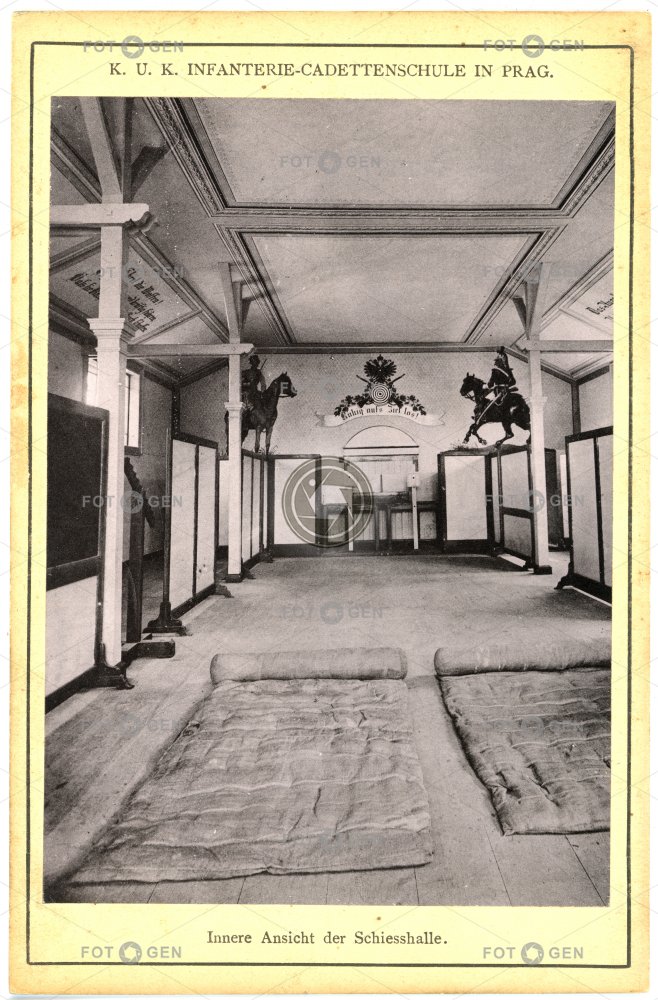 cadet cvičiště ground Infantry Cadet SchoolI hala hall kadet kasárna military barracks místopis Prague Praha shooting school střelba škola topography training Troops vojsko výcvik