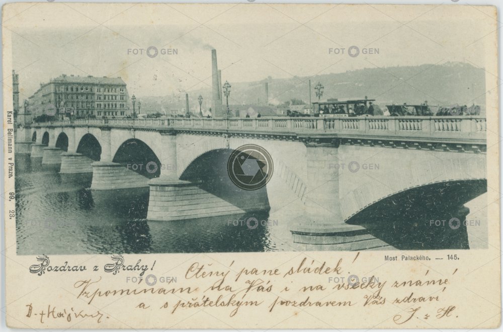 1899 bridge Karel Bellmann místopis most Palackého Podskalí Prague Praha river řeka topography Vltava