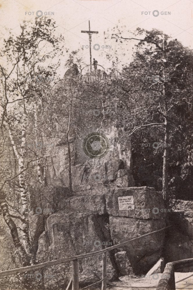 cross Jánská skála Karlovy Vary Karlsbad kříž lázně leisure místopis railing rock spa topography Tschierl Felsen view volný čas vyhlídka zábradlí