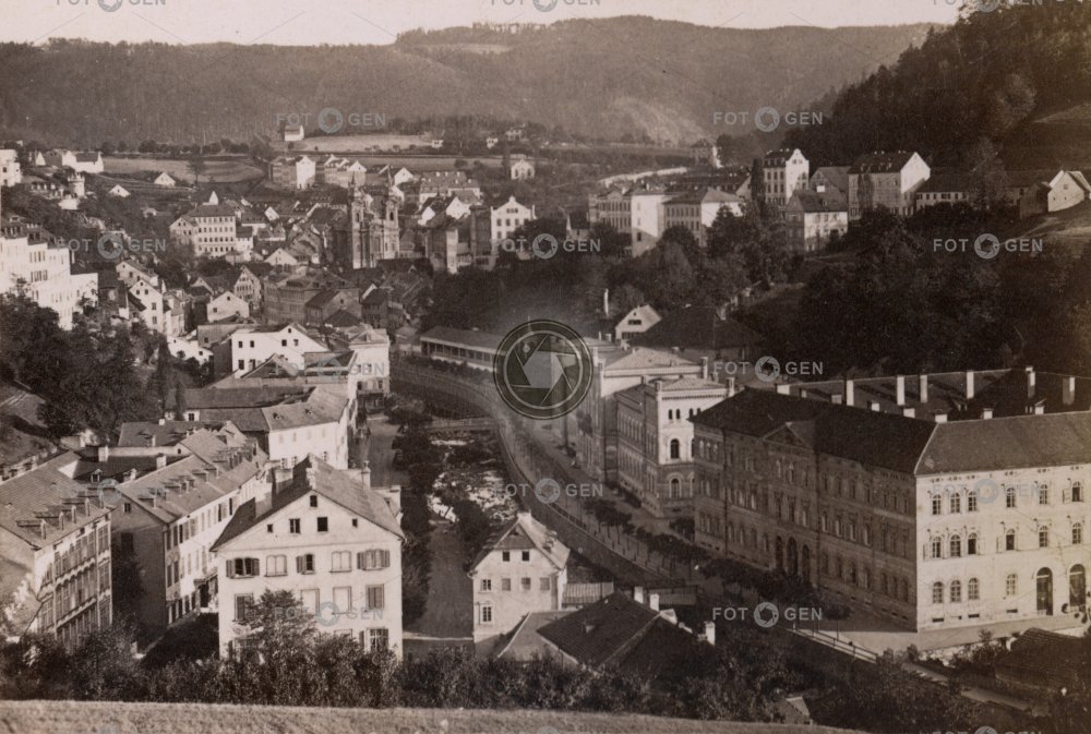 bird's eye view Karlovy Vary Karlsbad místopis panorama ptačí perspektiva river řeka Teplá topography