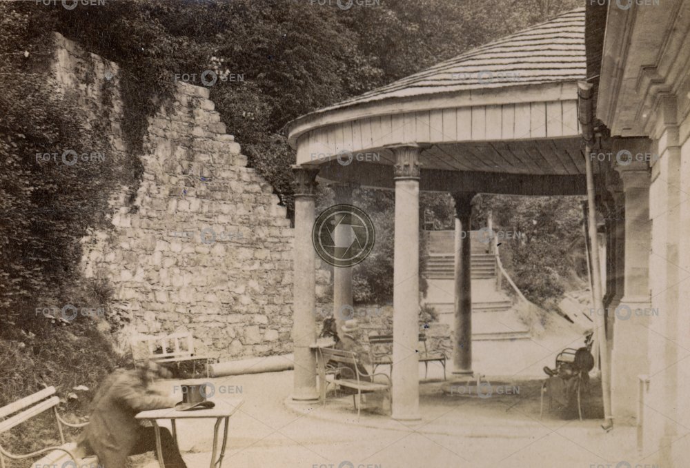 altán bench column cylindr gazebo Karlovy Vary Karlsbad lavička lázně místopis pavilion Pavilon sloup spa spring of Teresa stůl table Teresienbrunnen Terezin pramen top hat topography