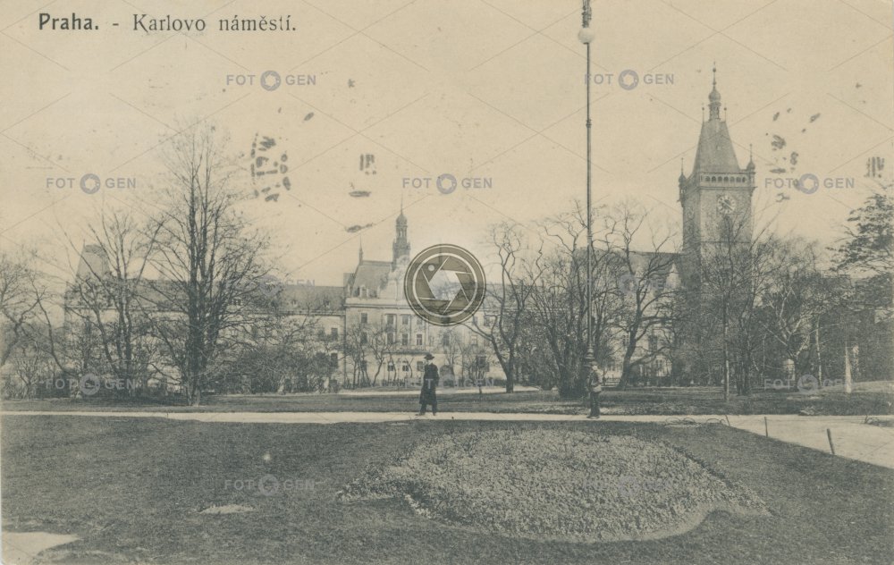 1911 belfry city Park clock hodiny Charles square Charles' Square Karlovo místopis náměstí New Town Nové Město park pouliční osvětlení Prague Praha radnice topography tower town hall věž zvonice