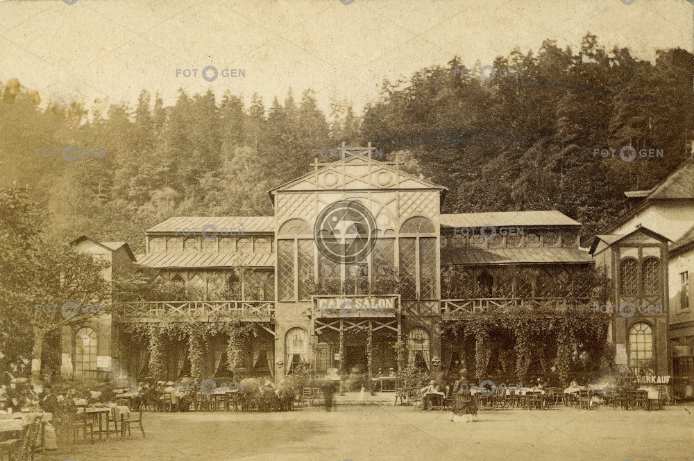 cafe Cafe salon dvorana hall Karlovy Vary Karlsbad kavárna lázně leisure místopis posezení sitting spa stoly tables topography volný čas