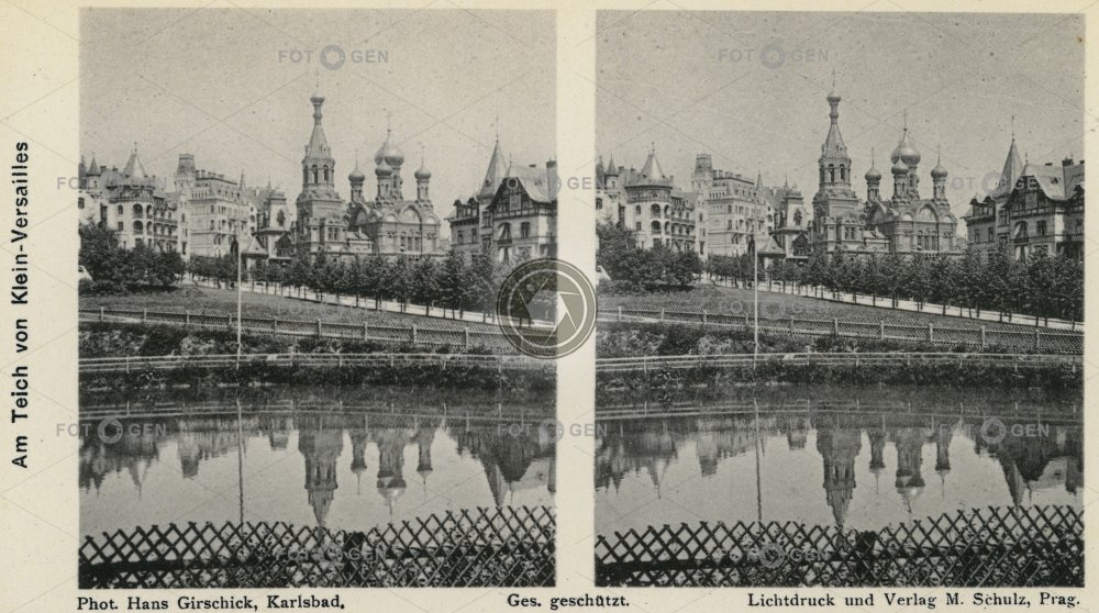 Karlovy Vary, část zvaná Malé Versailles, stereofotografie Autor: Hans Girschick