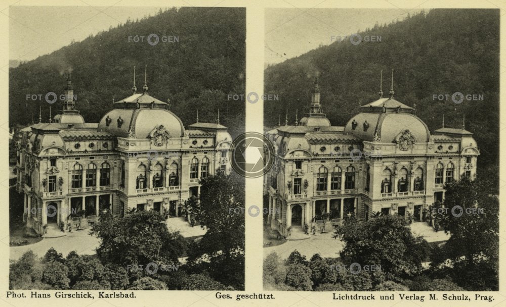 bird's eye view Císařské lázně Imperial spa Karlovy Vary Karlsbad lázně místopis park ptačí perspektiva spa topography