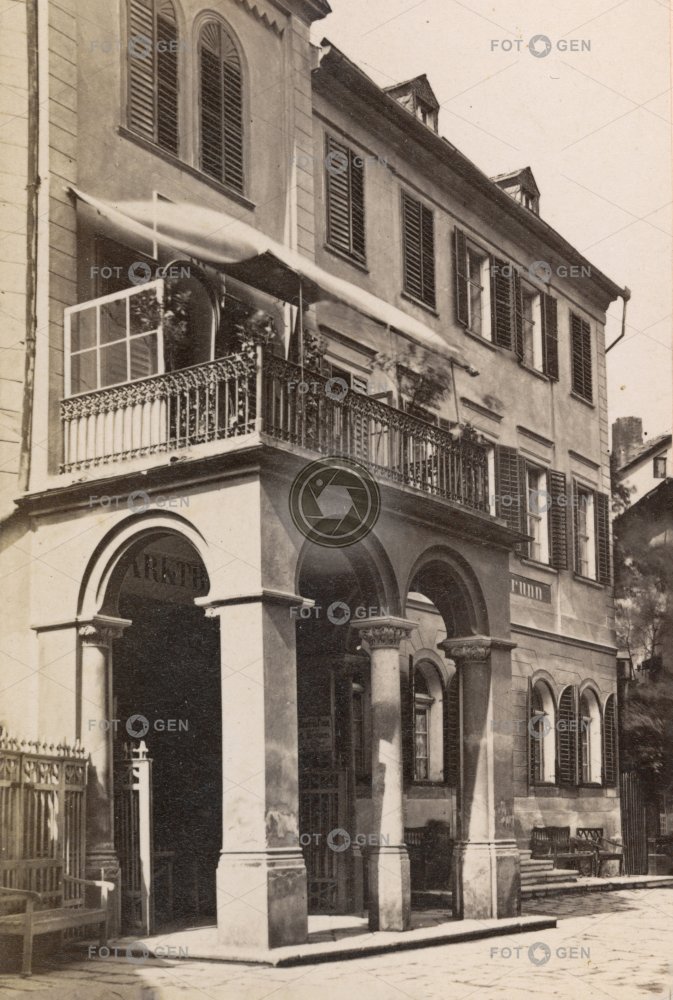 balcony balkon dům Tržního pramene Karlovy Vary Karlsbad lázně Market spring Market Spring House místopis spa topography Tržní pramen