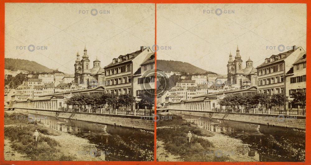 colonnade embankment empír empire Hot spring church Karlovy Vary Karlsbad kolonáda kostel lázně místopis nábřeží river řeka spa Sprudel Colonnade topography Vřídlo