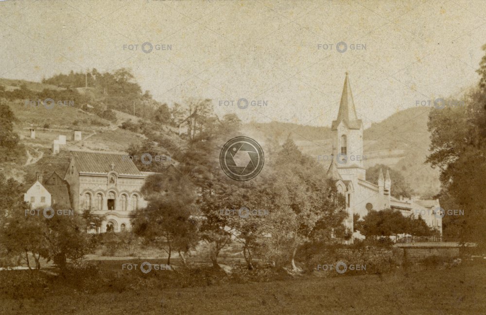 Classicism evangelical evangelický fara church Church of St. Peter and Paul Karlovy Vary Karlsbad klasicismus kostel sv. Petra a Pavla lázně místopis parish slope spa stromy svah topography trees