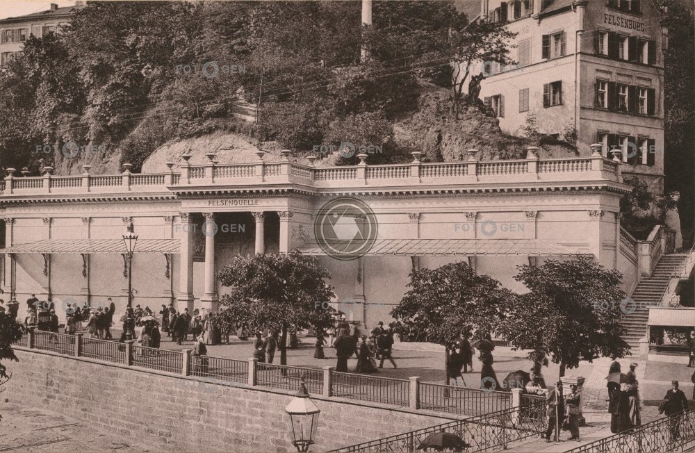 alleys Karlovy Vary Karlsbad lázeňští hosté lázně místopis nábřeží Rock spring Skalní pramen spa spa guests stromořadí topography waterfront