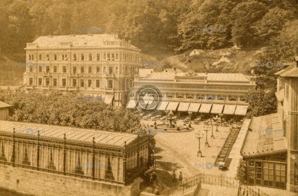 Cafe Pupp. hotel celkový pohled garden general view Karlovy Vary Karlsbad kavárna Pupp. hotel lázně místopis spa topography zahrada