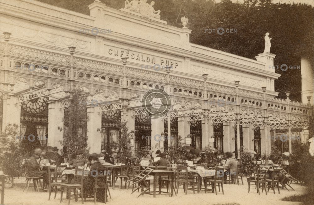 cafe Café Salon Pupp Carlsbad Karlovy Vary Karlsbad kavárna lázeňský host lázně leisure luxury luxus místopis spa spa guest stoly tables topography volný čas