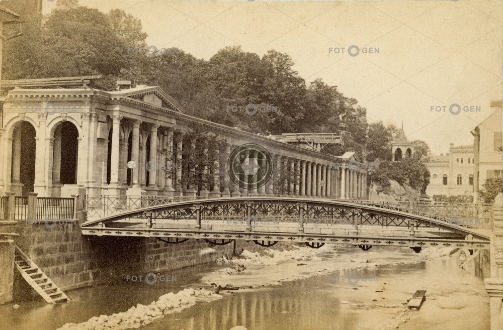 bridge Colonnade of the New Spring Karlovy Vary Karlsbad kolonáda Nového pramene lázně Mill Colonnade místopis Mlýnská kolonáda most river říčka spa Teplá topography