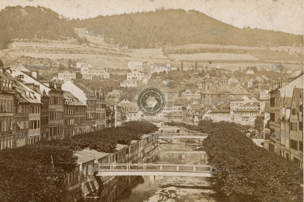 bird's eye view footbridges Karlovy Vary Karlsbad lávky lázně místopis ptačí perspektiva river řeka spa Teplá topography Warm