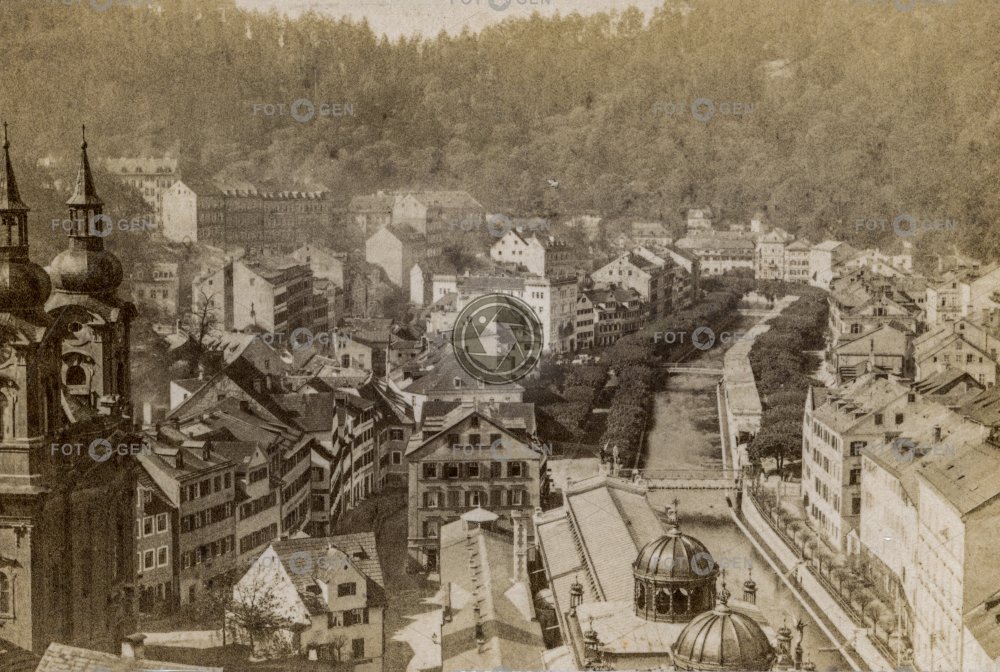 bird's eye view church Karlovy Vary kostel lázně místopis ptačí perspektiva river řeka spa Teplá topography