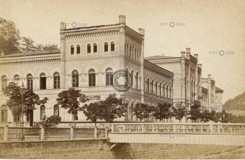 embankment footbridge Karlovy Vary Karlsbad lávka lázeňský dům lázně Lázně III místopis nábřeží Neo-Gothic neogotika spa spa house topography