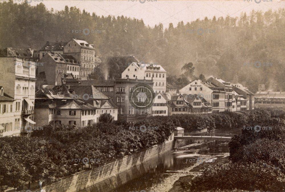 Carlsbad embankment Karlovy Vary Karlsbad lázně místopis nábřeží Neue Wiese New meadow Nová louka river řeka spa street Teplá topography údolí ulice valley