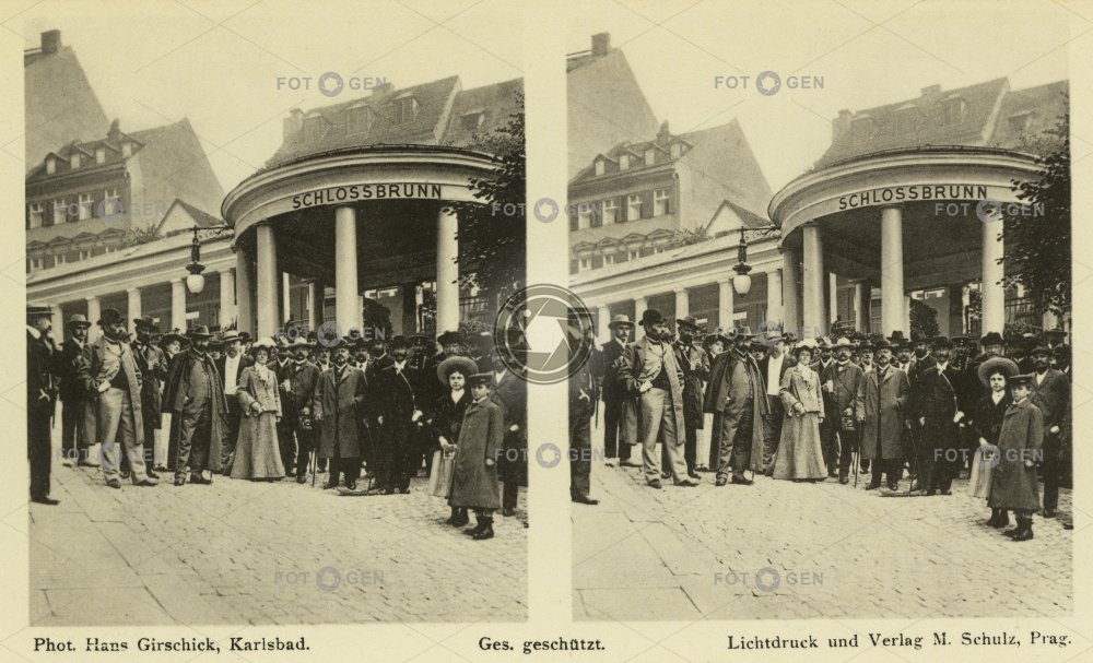 Castle spring crowd Karlovy Vary Karlsbad lázně mineral water minerální voda místopis morning ráno Schlossbrunn spa topography Zámecký pramen zástup