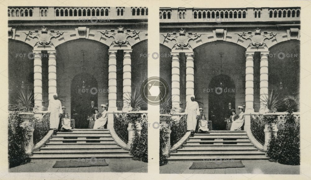 Karlovy Vary?, společnost u schodů, stereofotografie Autor: Hans Girschick?