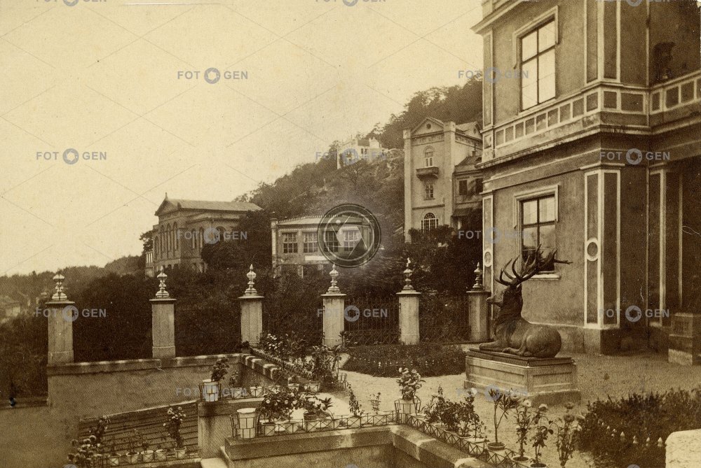 deer garden jelen Karlovy Vary Karlsbad lázně místopis socha spa statue terasa terrace topography vila Lützov villa Lützov zahrada