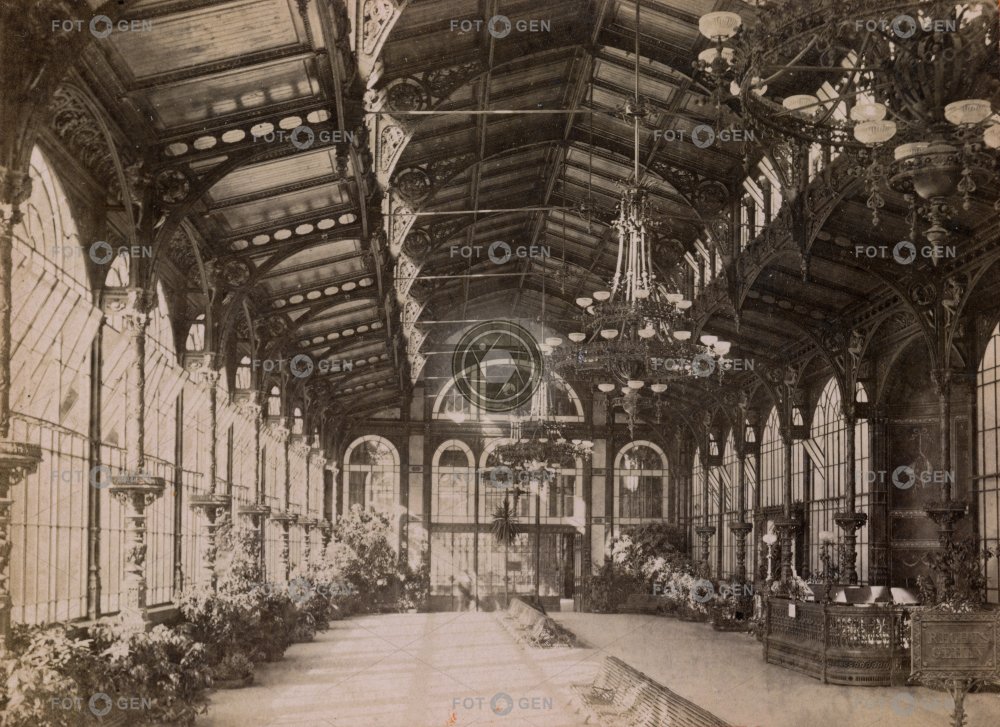 bench cast iron colonnade flower Hot spring colonnade chandelier interiér interior Karlovy Vary Karlsbad květina lavička lázně litina lustr místopis spa topography Vřídelní kolonáda