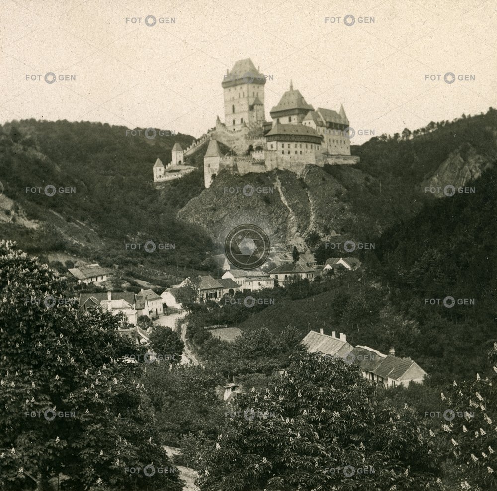 castle celkový pohled flowers general view hill hrad chestnut Karlštejn kaštan kopec květy místopis rock skála strom topography tree