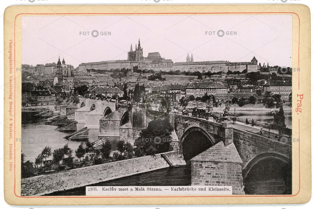 Karlův most, Malá Strana a Hradčany, světlotisk, 1894, kabinetka