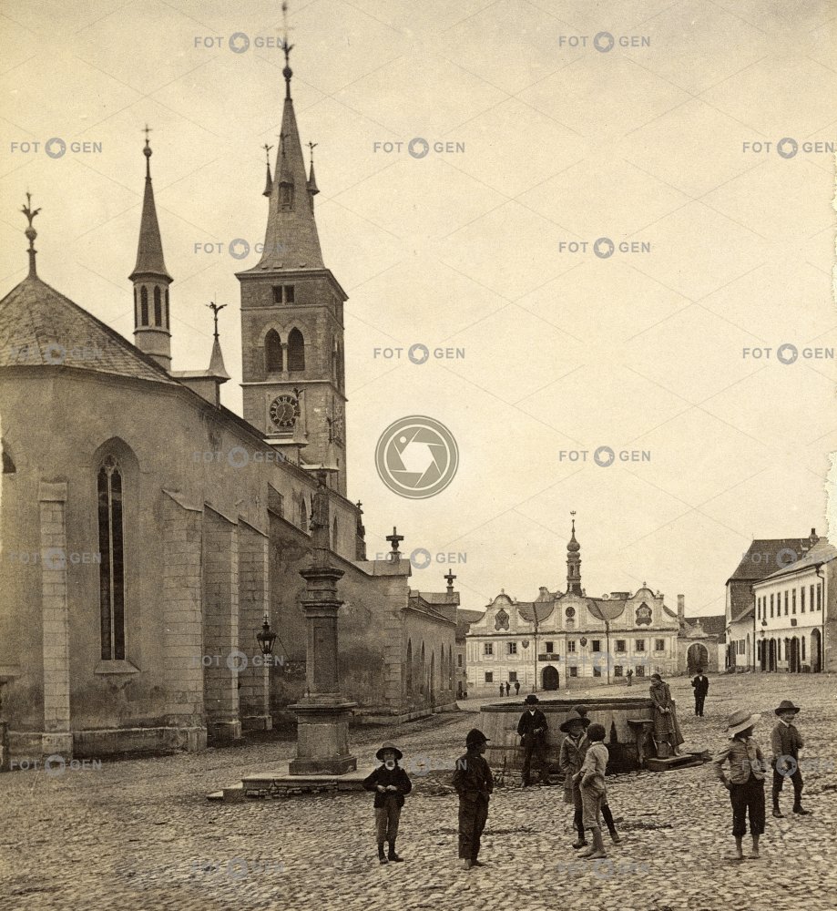 Bergreischenstein celkový pohled děti fountain general view children church kašna Kašperské Hory kostel místopis náměstí observer pozorovatel socha square St. John of Nepomuk st. Margaret statue sv. Jan Nepomucký sv. Markéta topography