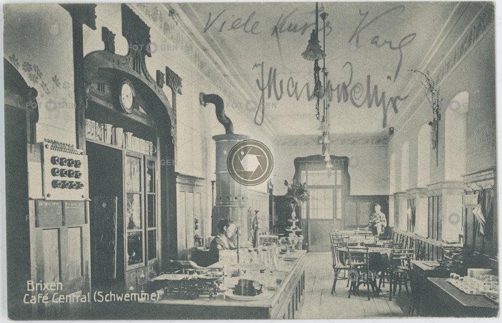 1936 Bressanone Brixen cafe Central equipment interiér interior Itálie Italy kamna kavárna leisure místopis oven Persenon Porsenu stove tap counter topography volný čas vybavení výčep výčepní pult
