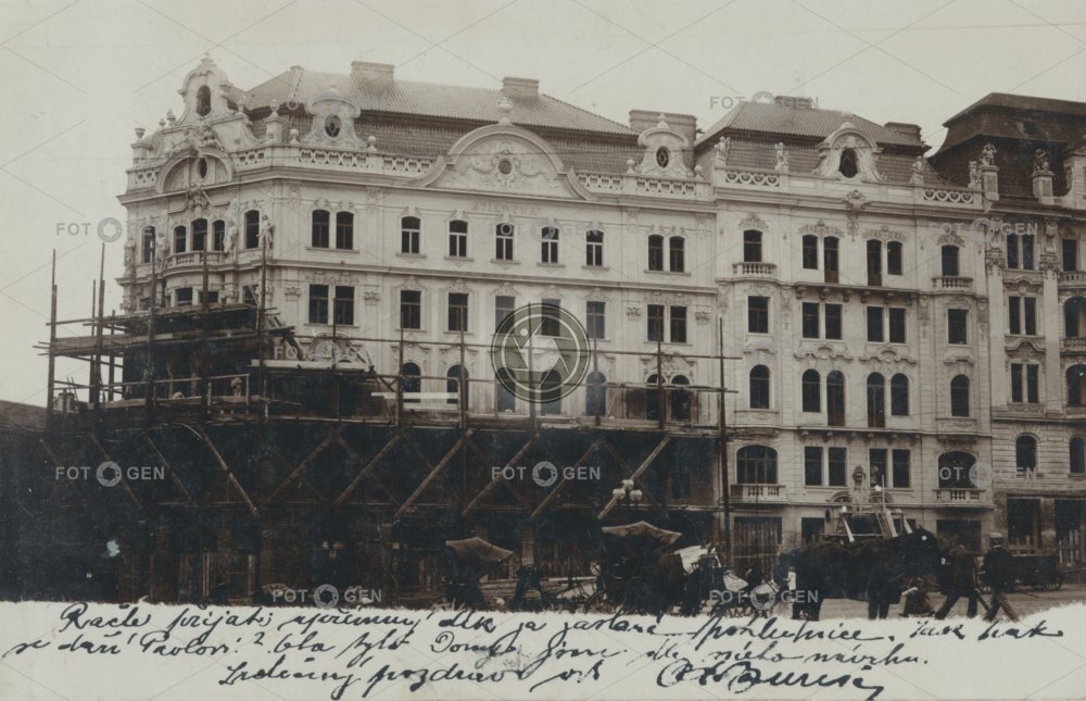 bank banka cafe construction Detvan drožka dům fiakr Hlavovka kavárna Královské Vinohrady Míru místopis náměstí Peace Square Prague Praha Royal Vineyard rozestavěný square stavba topography Vinohrady