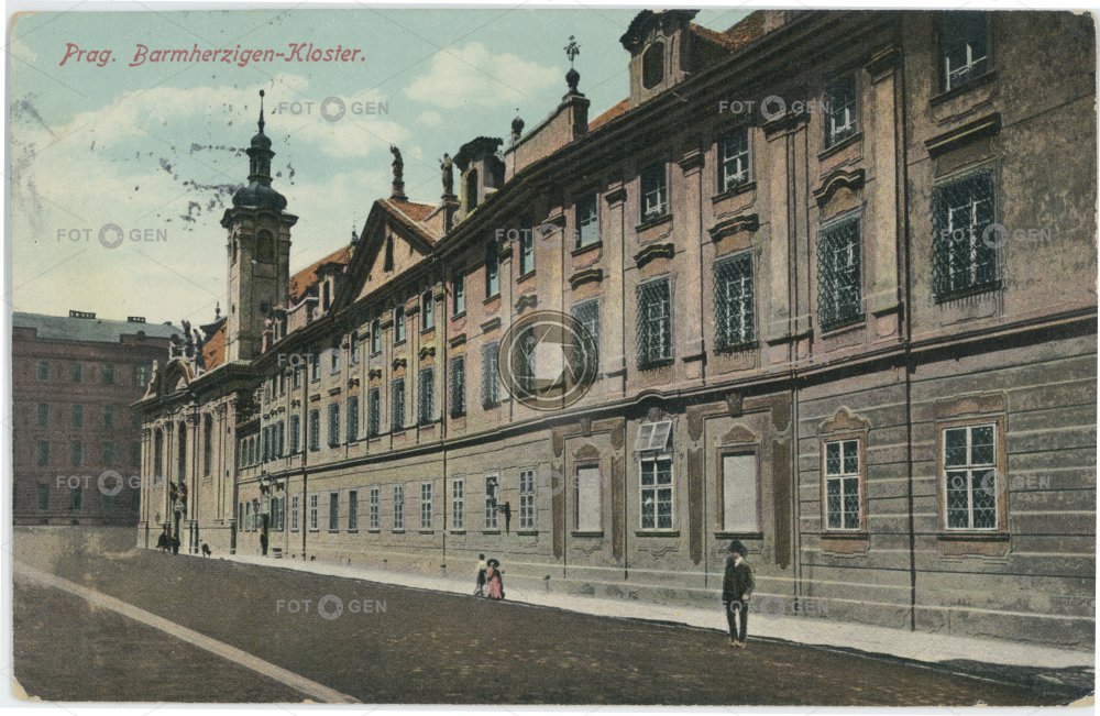 1914 barevná brothers of Mercy cloister colored convent hospital chrám church klášter kolorovaná kostel milosrdných bratří místopis monastery Na Františku nemocnice Old Town poliklinika Prague Praha Staré Město sv. Šimona a Judy špitál topography U milosrdných