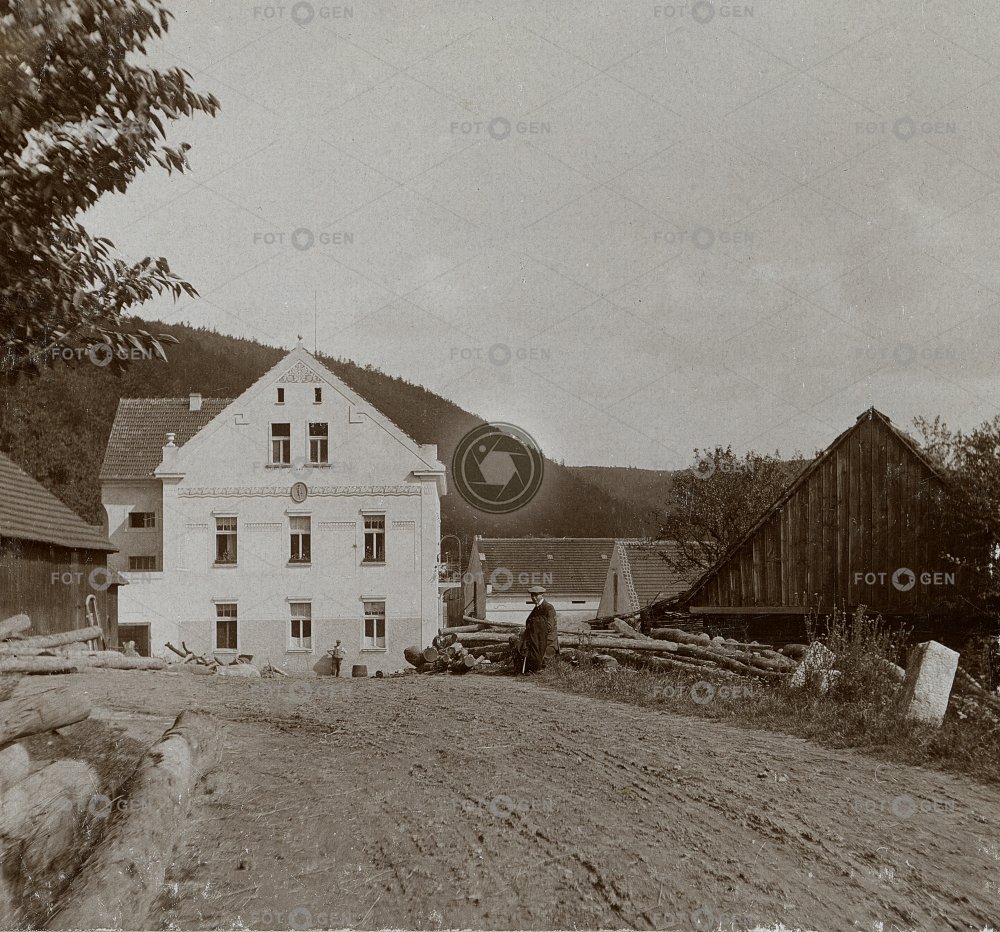 Kočkův Mlýn, Slabce čp. 16, polovina stereofotografe (datováno 11 9 . 1913, pozdější pila, opuštěná po povodních 2002)