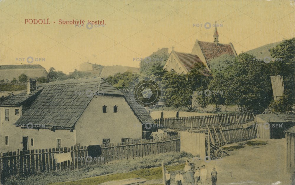 1913 barevná color colored church Kirche kolorovaná kostel Michael the Archangel Michaela archanděla místopis neexistující neexistující objekt nonexistent building Podolí Prague Praha Romanesque románský St. Michael the Archangel sv. Michaela Archanděla topography