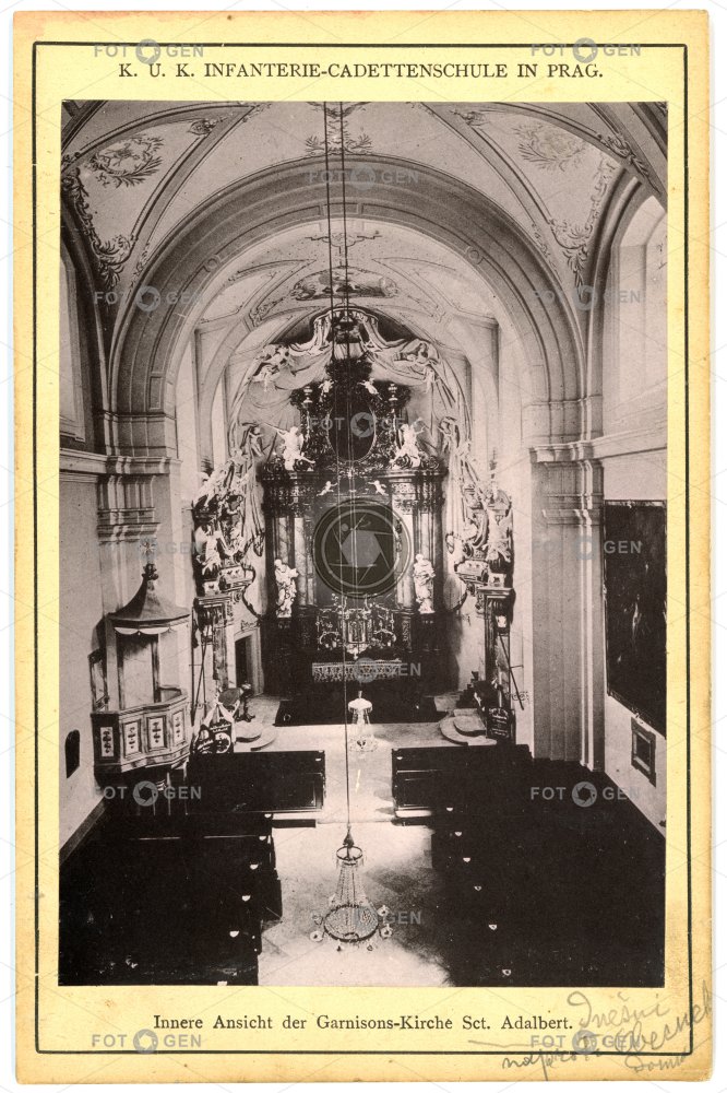 altar chandelier church interiér interior kasárna kostel lustr lyceum místopis oltář Prague Praha school st. Adalbert sv. Vojtěch škola topography Troops vojsko