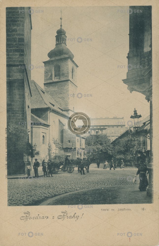 alive belfry cab drožka ekvipáž equipage fiacres fiakr Gothic gotika Havlíčkovo horse-drawn carriage chrám church Karel Bellmann koňský povoz kostel Kunhuty místopis osvětlení pouliční lampa Prague Praha Senovážné street lamp svaté svatého Jindřicha temple topography tower věž zvonice živá