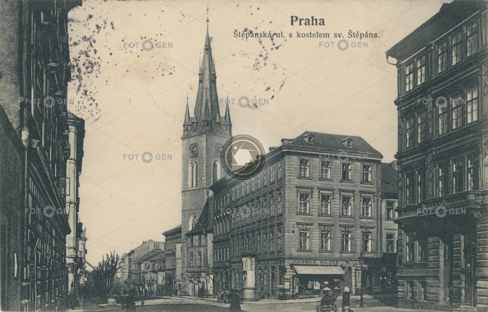 1906 clock Gothic gotika hodiny church Kirche kostel místopis New Town Nové Město Prague Praha římskokatolický St. Stephen's sv. Štěpána Štěpánská topography